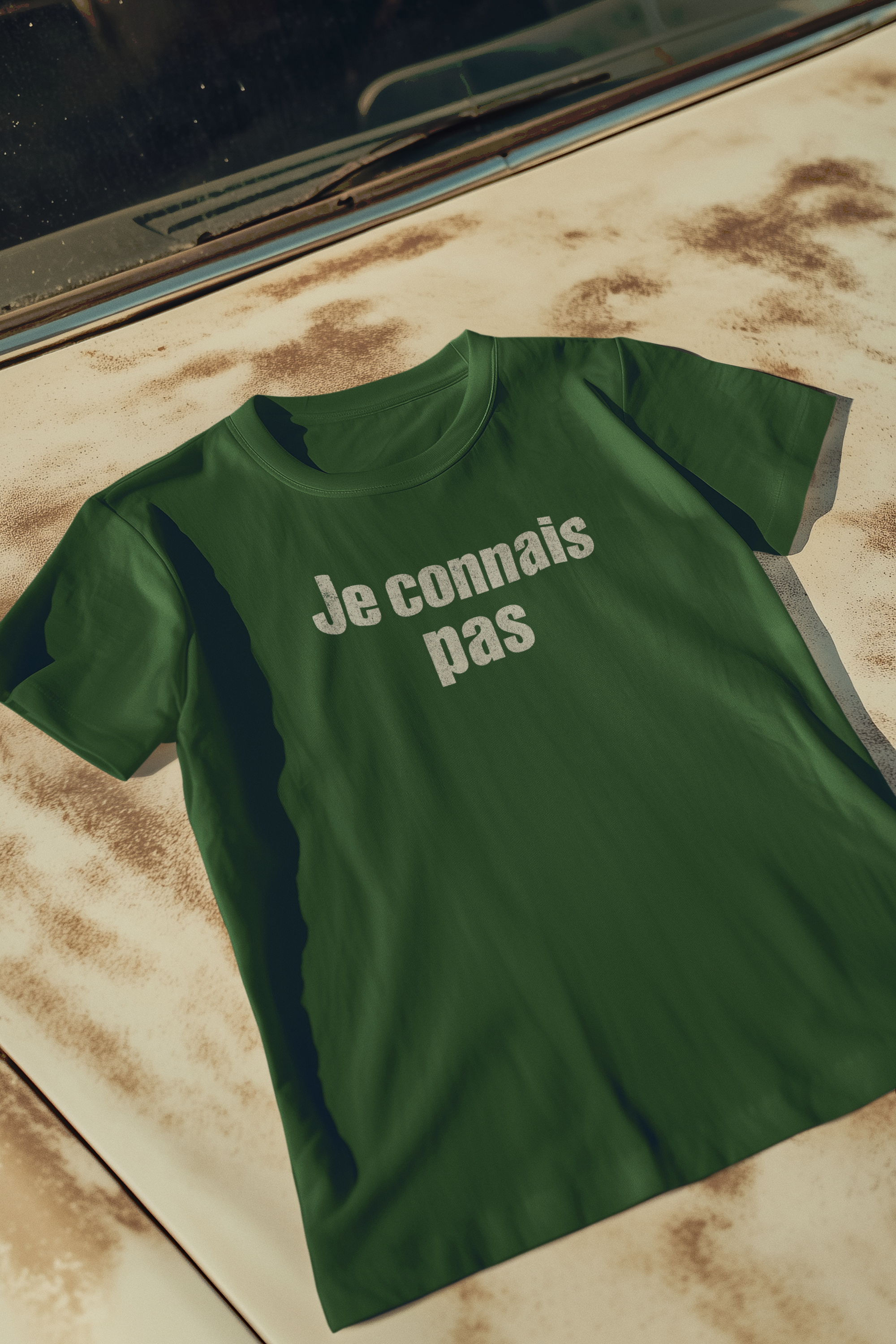 Je connais pas (I don't know). Show off your Cajun pride with our Cajun French T-Shirts, designed to highlight the vibrant spirit and unique language of Cajun culture. This unisex jersey short sleeve tee is crafted to fit like a well-loved favorite, making it the perfect addition to your Cajun apparel collection. Made from 100% Airlume combed and ring-spun cotton, this Cajun French T-Shirt is lightweight, breathable, and ideal for both active and leisure wear. Key features include:
