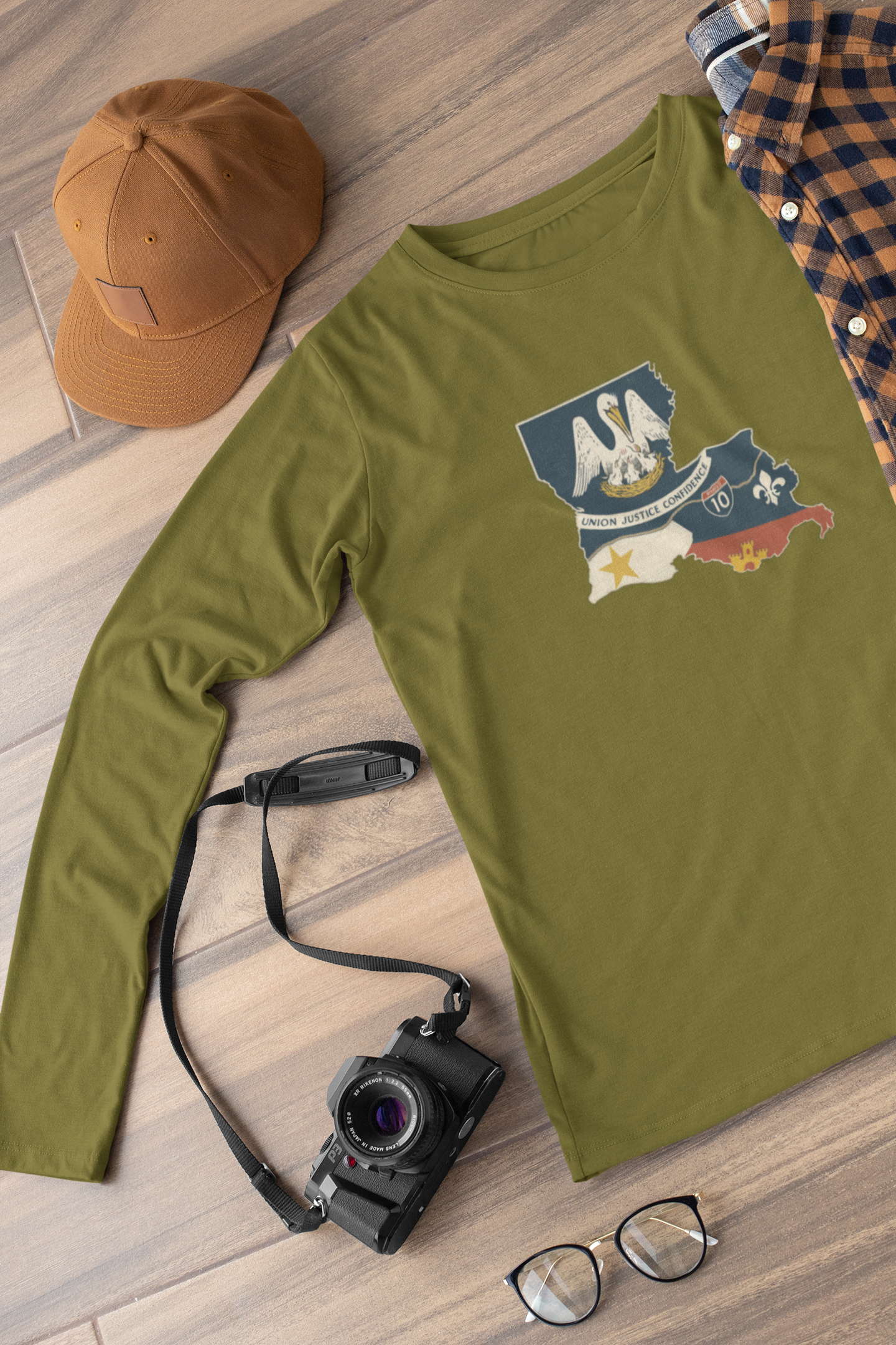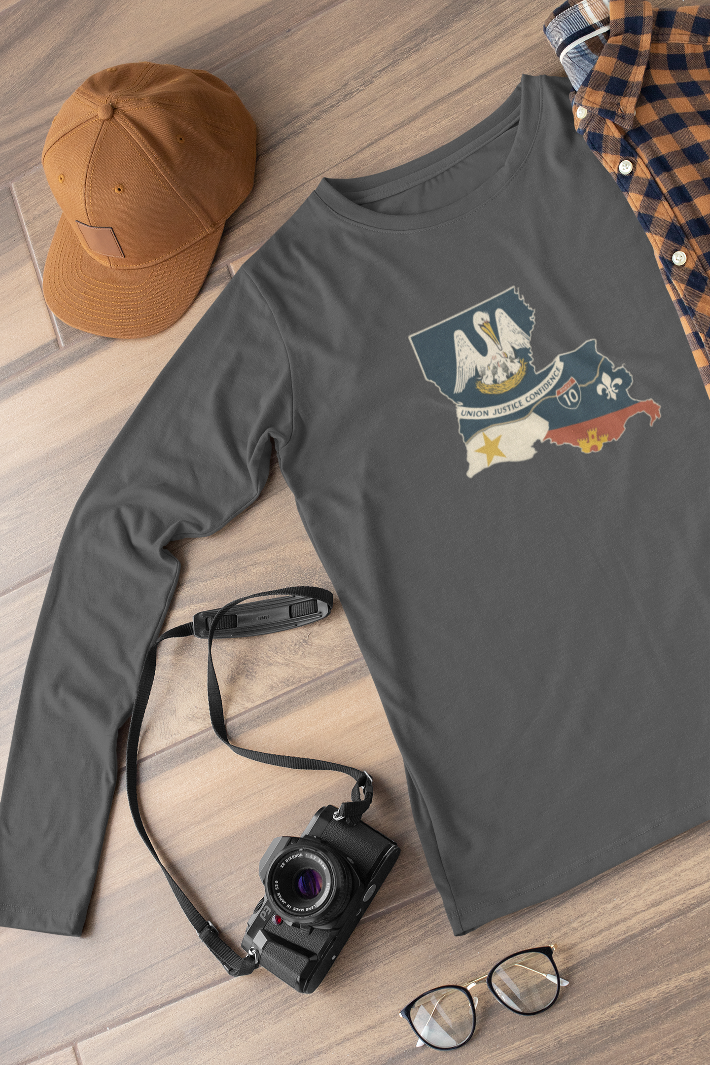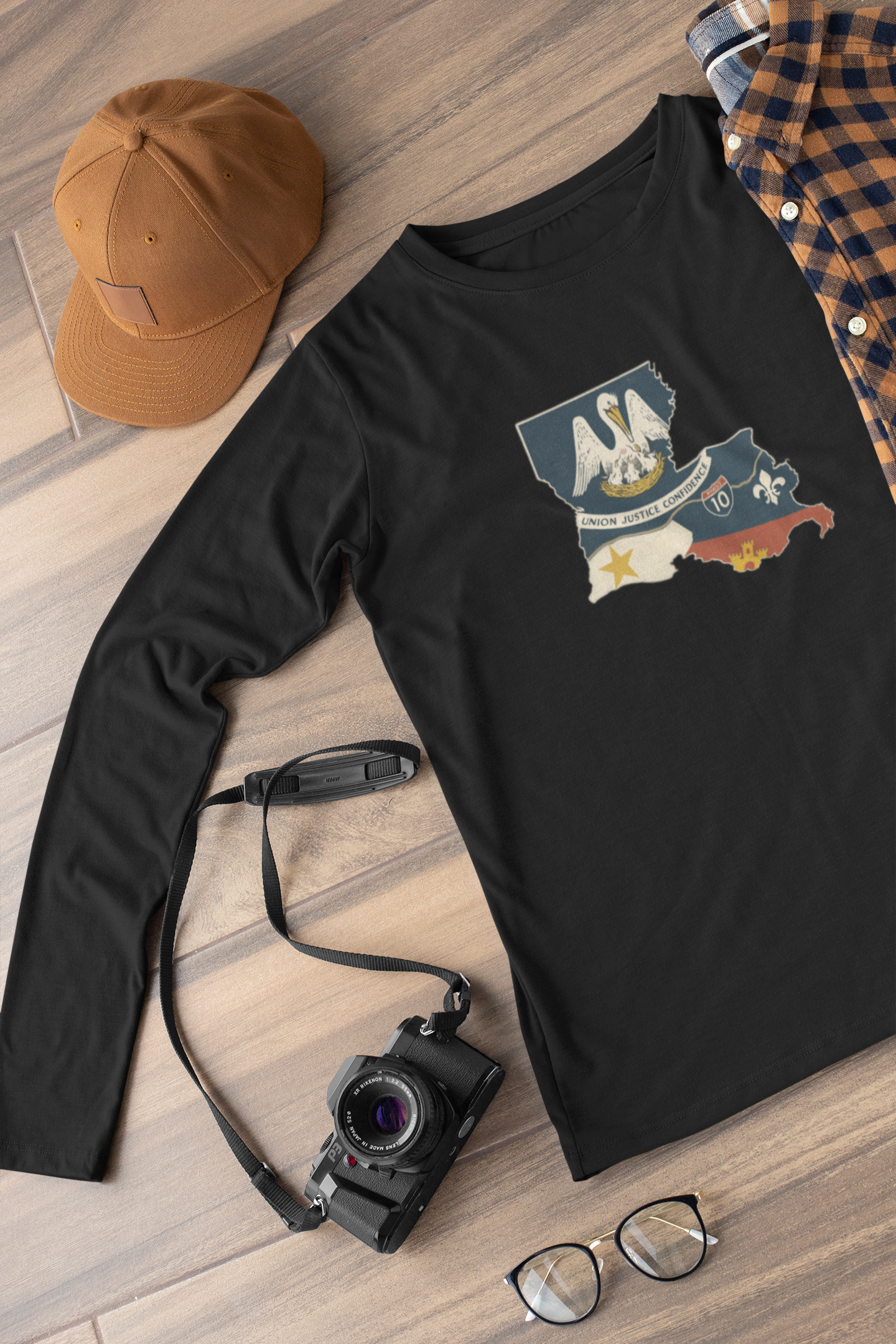 South of Interstate 10 Map Long Sleeve T-Shirt Moisture Wicking Cajun Tee