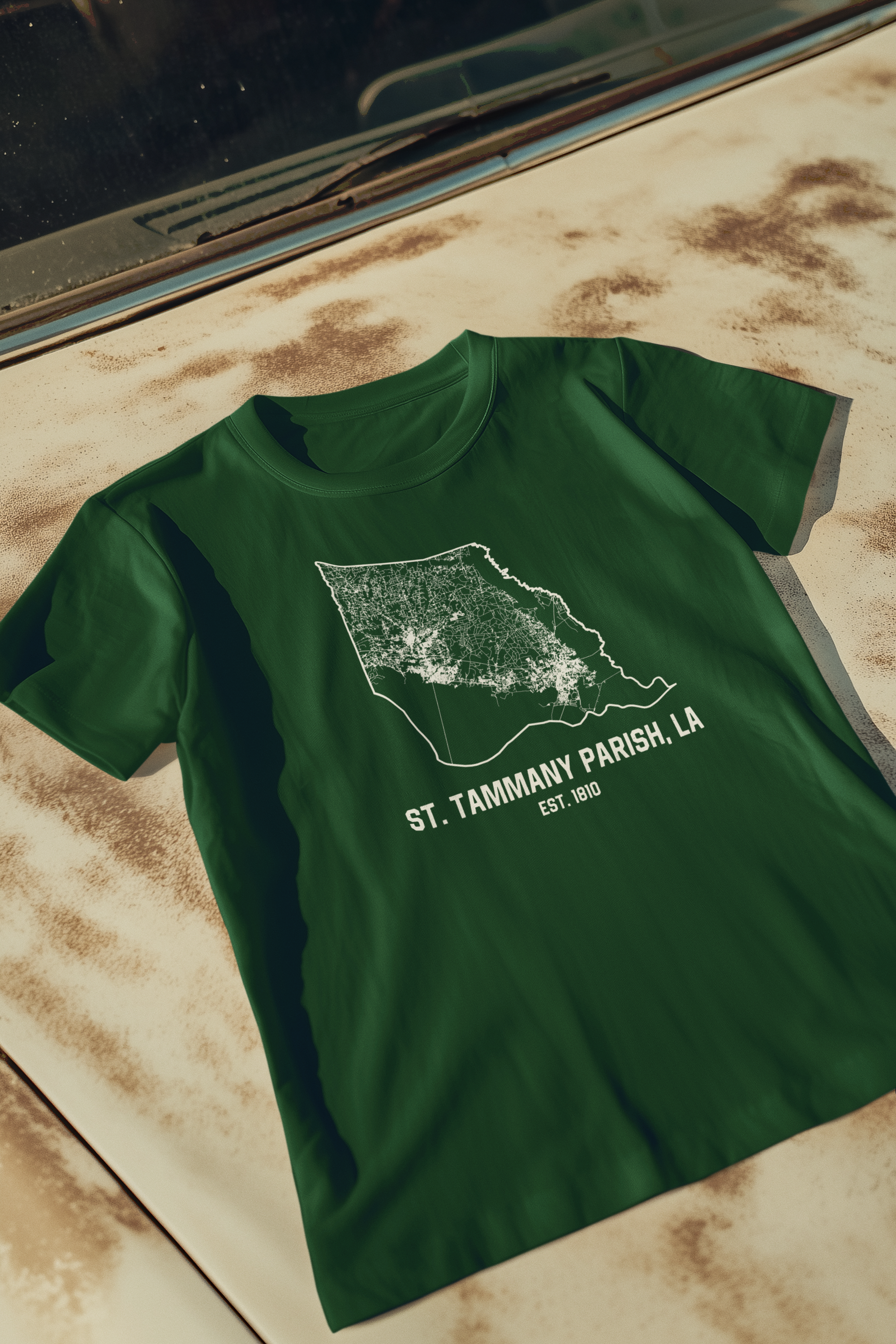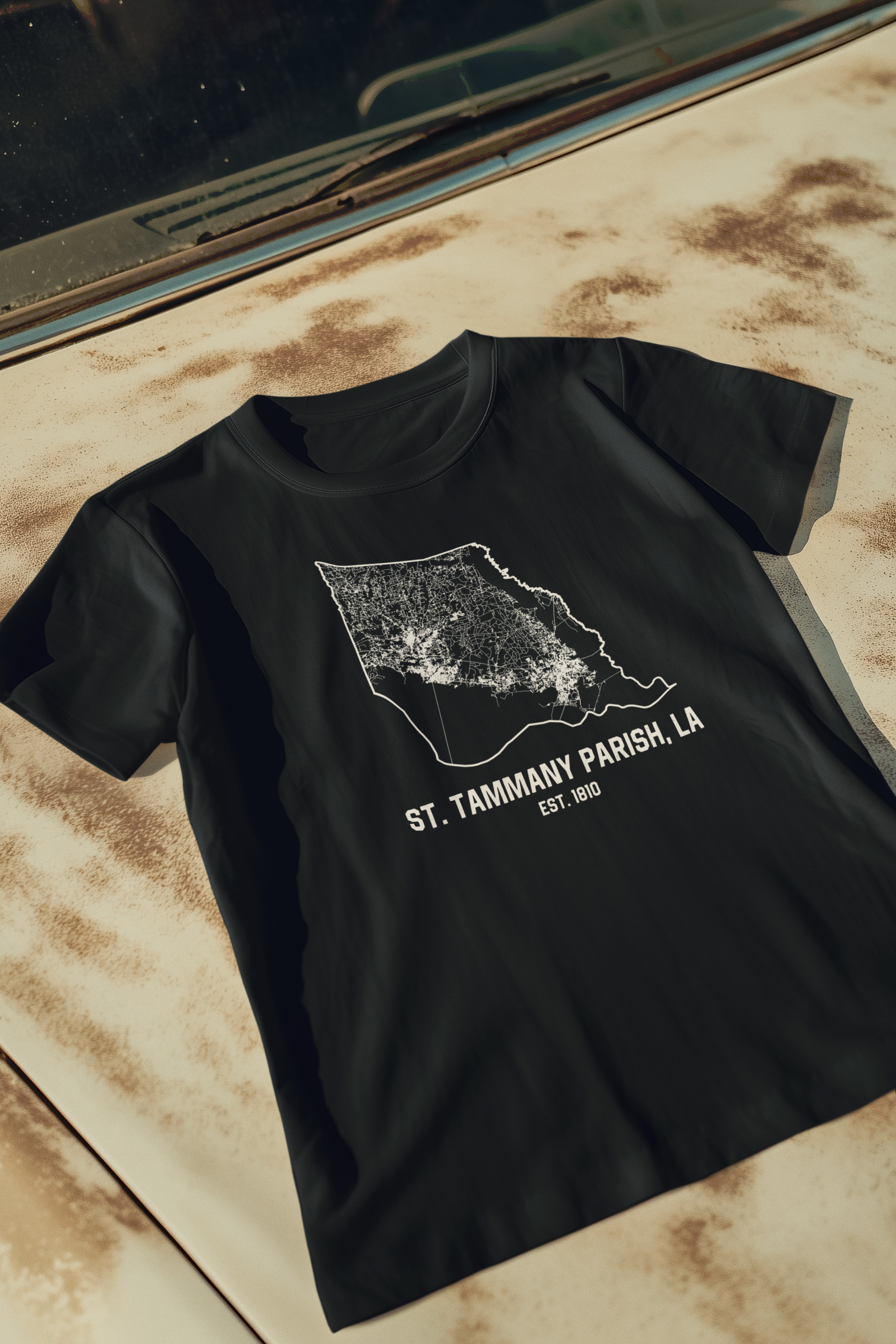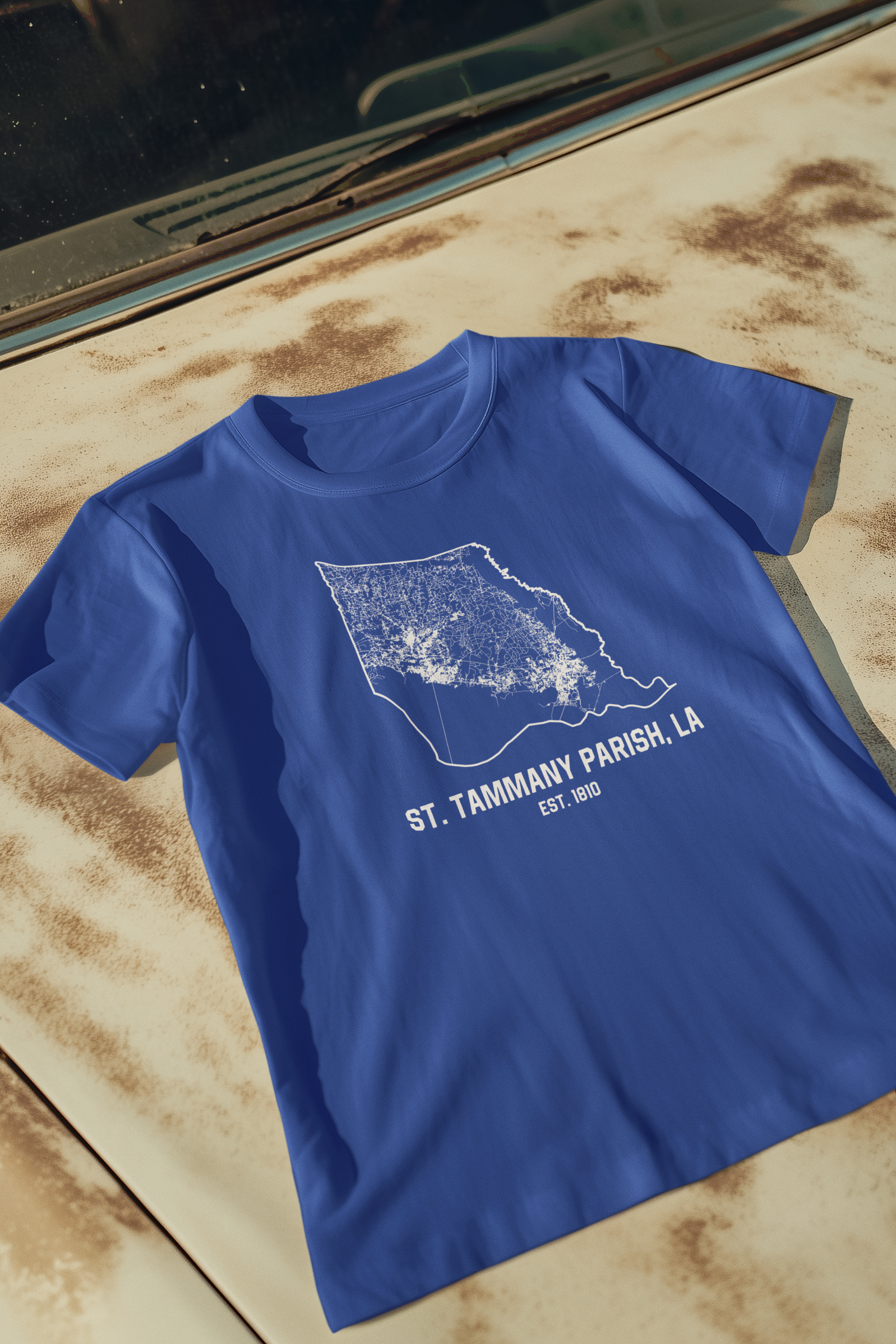 Show off your hometown Parish with our St. Tammany Parish Cajun T-Shirts, designed to highlight the vibrant spirit of Cajun culture. This unisex jersey short sleeve Cajun T-shirt is crafted to fit like a well-loved favorite, making it the perfect addition to your Cajun apparel collection. Made from 100% Airlume combed and ring-spun cotton, this St. Tammany Parish Cajun T-Shirt is lightweight, breathable, and ideal for both active and leisure wear. Key features include: